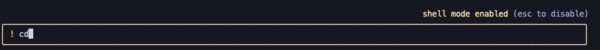 !だけを入力すると「シェルモード」に切り替わり、すべての入力がコマンドとして扱われる。連続してコマンドを実行したい場合に便利だ。