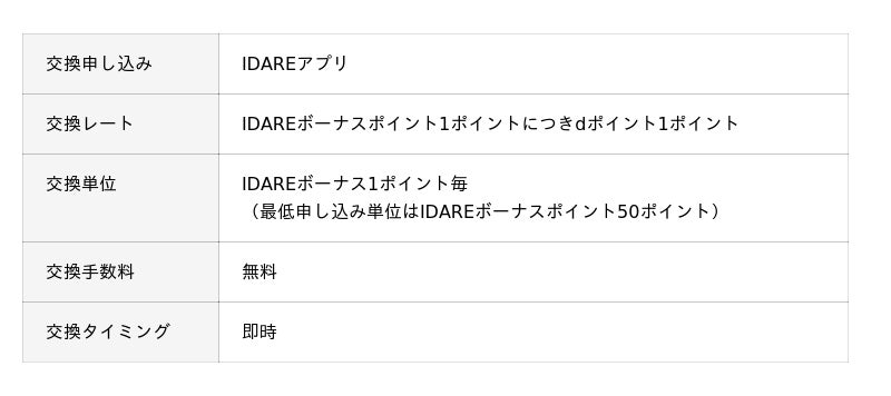 IDAREボーナスポイント、ドコモ「dポイント」への交換が可能に!