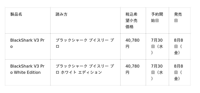 ■「BlackShark V3 Pro」シリーズ取扱店