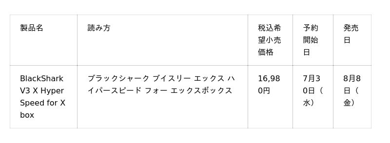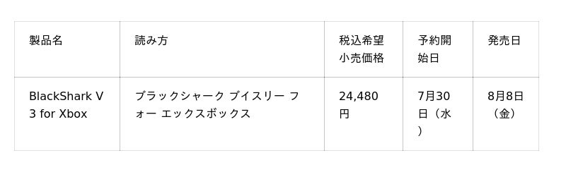 上記製品公式URL:https://www.razer.com/jp-jp/console-headsets/razer-blackshark-v3-for-xbox