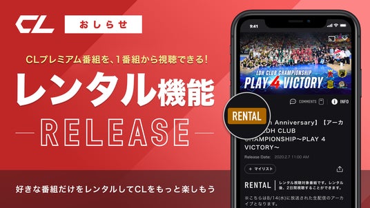 CLではこれまで月額でご利用いただける「CLプレミアム」にてオンデマンド番組を提供してきましたが、CLプレミアム会員ではないフリー・フリーPLUS会員の皆様にも、お気軽にオンデマンド番組を楽しんでいただけるよう、番組単位で視聴可能なレンタル配信をご用意いたしました。CLプレミアム会員の皆様は引き続き、オンデマンド番組見放題でお楽しみいただけます。