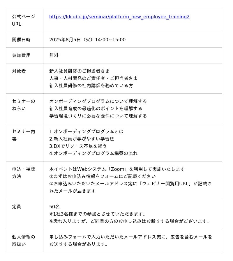 「新入社員のオンボーディングプログラム(学習環境)の構築とは?DXでリソース不足を補う!」ウェビナーを開催(8月5日14:00~15:00)|株式会社LDcube