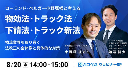 【2025年8月20日(水)ハコベルウェビナー開催】小野塚様と考える 物効法、トラック法、下請法「トラック新法物流業界を取り巻く法改正の全体像と具体的な対策」