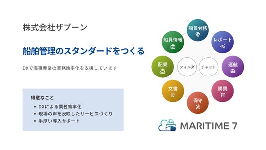 船舶管理プラットフォーム「MARITIME 7」を開発・運営する株式会社ザブーン(本社:東京都港区新橋、代表取締役:戸高克也)は、新たに「船員情報管理」機能をリリースしました。研修履歴や乗船歴、保有資格など、船員の基本情報をクラウド上で一元管理し、管理者の業務負担を軽減。資格の有効期限切れなどを自動で通知するアラート機能や、乗組員名簿・履歴書の自動作成機能なども備え、船員管理にかかる手間とミスの削減を実現します。