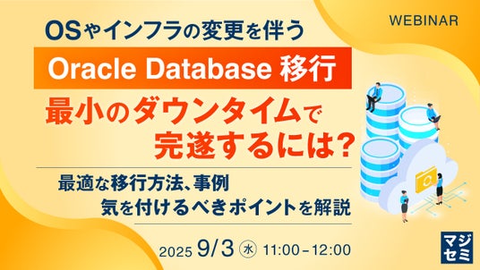 マジセミ株式会社は「OSやインフラの変更を伴うOracle Database移行、最小のダウンタイムで完遂するには?」というテーマのウェビナーを開催します。