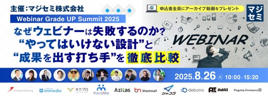 マジセミ株式会社は「【Webinar Grade UP Summit 2025】なぜウェビナーは失敗するのか?やってはいけない設計と成果を出す打ち手を徹底比較」というテーマのウェビナーを開催します。