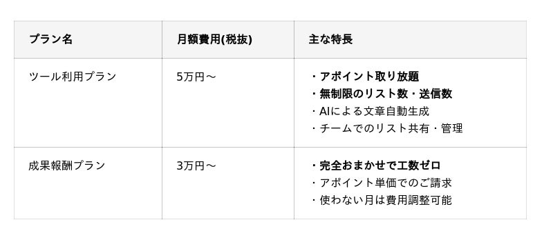 初期費用は一切不要。 企業のフェーズや営業戦略に合わせて選べる2つのプランをご用意しました。