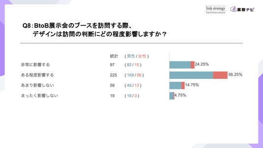 Q8:BtoB展示会のブースを訪問する際、デザインは訪問の判断にどの程度影響しますか?