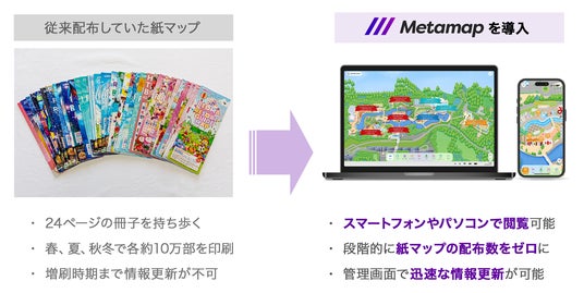 レオマリゾート、「メタマップ」導入でテーマパークDX!デジタルマップで印刷コストを90%削減