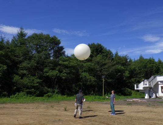 また、気象環境予測技術については、様々な観測装置による気象環境データ(風速・風向、気温、湿度等)の取得を行い、HOSPO周辺の気象環境データを蓄積していく計画です。(右写真:7月23日に実施したラジオゾンデによる気象観測実験の様子)