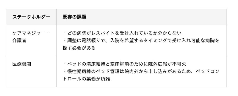 しかし、レスパイト入院については「どの医療機関が受け入れているか分かりにくい」「空床情報が見えにくい」「予約調整が電話中心で非効率」などの課題があります。