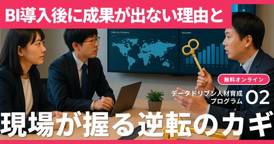 データドリブン人材育成プログラム2.本セミナーでは、【BI導入後に成果が出ない理由と、現場が握る逆転のカギ】と題して、データがあっても成果が出ない背景をひも解き、「今どこに立っているのか」「次に何をすべきか」を整理します。