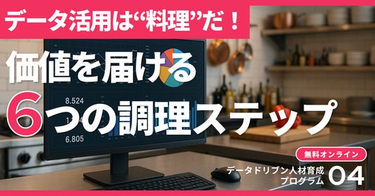 データドリブン人材育成プログラム4.本セミナーでは、【データ活用は“料理”だ!畑から食卓へ、価値を届ける6つの調理ステップ】と題して、"データ活用"で価値を届けるステップをわかりやすく解説していきます。