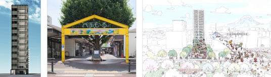「(仮称)銀座6丁目商業プロジェクト」、「ぺあもーる」、「(仮称)藤沢市湘南台プロジェクト」の3物件イメージ