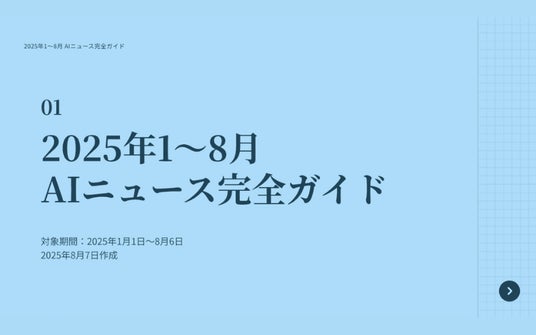 「2025年1~8月 AIニュース完全ガイド」を公開!AIツール活用により3時間で作成、主要11社の動向を個別解説