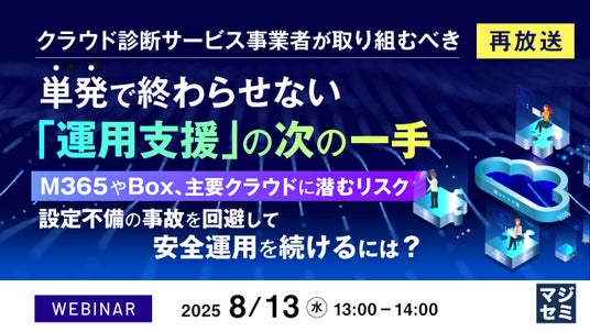 マジセミ株式会社は「【再放送】クラウド診断サービス事業者が取り組むべき、単発で終わらせない「運用支援」の次の一手」というテーマのウェビナーを開催します。