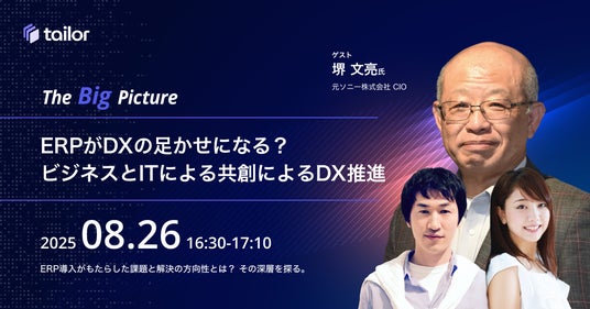 ヘッドレスERPプラットフォームを提供するTailor Technologies, Inc.(本社: 米国カリフォルニア州サンフランシスコ、代表:柴田陽)は、同社が主催するウェビナーシリーズ「The Big Picture」の第2回を2025年8月26日(火)に配信いたします。