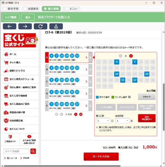 ロト6をスムーズに購入できる「自動入力ブラウザ」