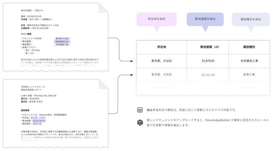 これらの課題に対しテクトムは、手作業では困難な大量の設計図面を、最先端のAI技術により自動で構造化する『Tektome KnowledgeBuilder』を提供しました。