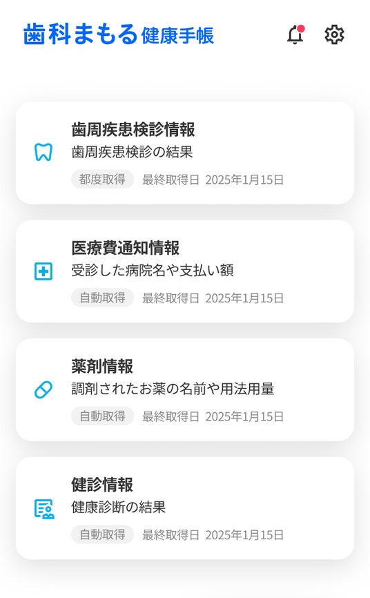 この度「歯科まもる 健康手帳」アプリがマイナポータルとの連携を開始したことで、利用者は歯周疾患検診情報、医療費通知情報、薬剤情報等および健診情報をアプリで管理できるようになりました。これらの情報を参考に歯科医師に相談することも可能となり、歯科健診だけでなく、継続的な健康サポートを受けることができます。