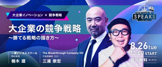 【申込者限定配信】楠木建氏×三浦崇宏氏 登壇|大企業の変革と成長戦略|8/26|SPEAKS 大企業の成長戦略サミット