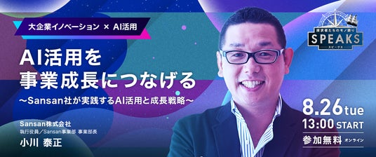 株式会社ニューピークス(NEWPEAKS.inc)は8月26日(火)、オンラインセミナーイベント「SPEAKS 大企業の成長戦略サミット」を開催します。