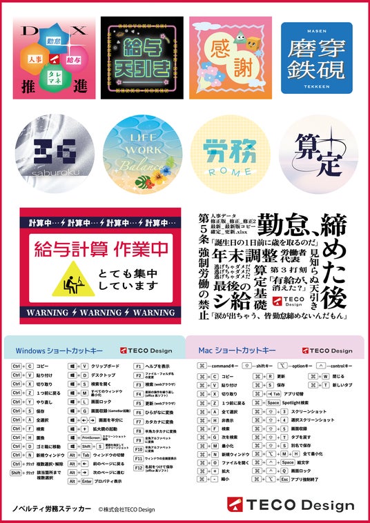 人事労務ご担当者様にはお馴染みの労務用語や、Windows・Macで使える業務効率化ショートカットキーをまとめた便利なステッカーをプレゼントします。