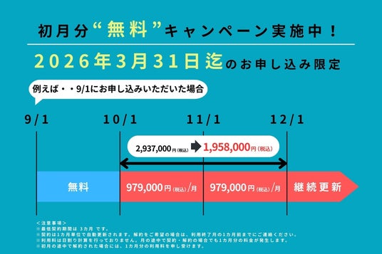 Tellus AI Playgroundのリリースを記念し、2026年3月末までにお申込みいただいた方限定で「初月分無料キャンペーン」を実施いたします。最低契約期間である3カ月のうち、初月分の料金が無料となります。ぜひこの機会にお早めにお申し込みください。