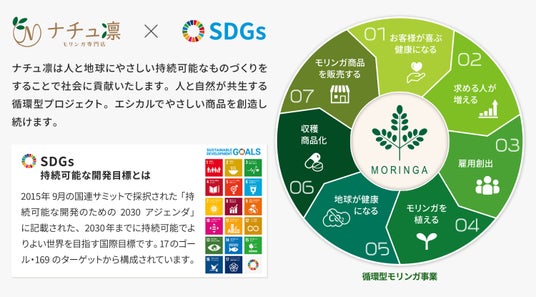 ナチュ凛はモリンガを通じて、人と地球にやさしい持続可能なものづくりをすることで社会に貢献いたします。人と自然が共生する循環型プロジェクト。エシカルで優しい商品を創造し続けます。