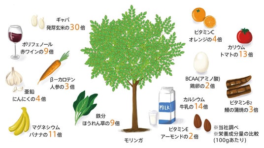 インドの伝統医学アーユルヴェーダでは300もの病気を予防するとされており、世界保健機関(WHO)や国際連合食糧農業機構(FAO)では、モリンガを使用して、発展途上国の慢性的な栄養不足を改善する取り組みも行われています。