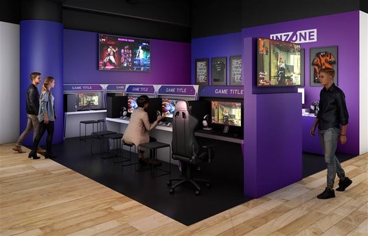 ソニーのゲーミングギア「INZONE(TM)(インゾーン)」のモニターやヘッドセットを、高性能なゲーミングPCやゲーミングチェアで試遊できるセットを9席用意。コーナー壁面の大型モニター(ブラビア)で対戦の観覧なども可能です。