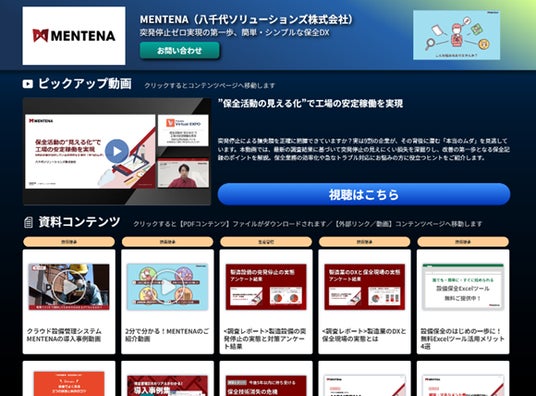 MENTENAは、設備管理や施設管理の現場において、脱エクセルやペーパーレスを実現し、現場の働き方改革を促進する設備管理システムです。紙やエクセル管理からクラウドシステム管理へ移行することで、現場作業の効率化や点検履歴の効果的な管理を行うことが可能です。誰でも説明書なしで理解できるわかりやすいデザイン、初期費用がかからない定額制、導入から運用までバックアップするサポート体制を備えた、「カンタン」「始めやすい」「安心サポート」を実現しており、特にお客さまにとって設備管理情報の一元管理というメリットをご提供できることが強みです。本サービスは発売以降、製造業、ビルメンテナンス、ガス・電力業界のお客さま、あるいは設備管理業務の効率化といったニーズをお持ちのお客さまに幅広く活用されています。