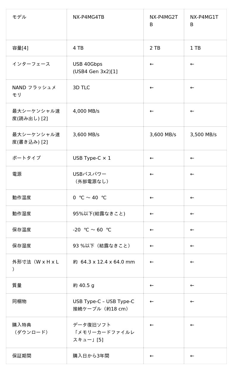 NX-P4MG1TB(1 TB):オープンプライス ※市場想定価格:27,800円(税込)