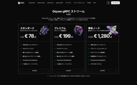 共有のSolana Geyser gRPCについて、今回の増設に伴う価格や仕様の変更はありません。現行の設定のままご利用いただけます。