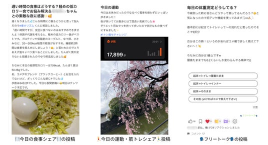 本コミュニティは、日々の取り組みを可視化するポイント機能を通じて、仲間と共に学び、励まし合いながら継続できる環境を整えています。メンバー同士がレシピを共有したり、運動の工夫を紹介したりと、「応援し、応援される」温かいつながりが自然と育まれています。