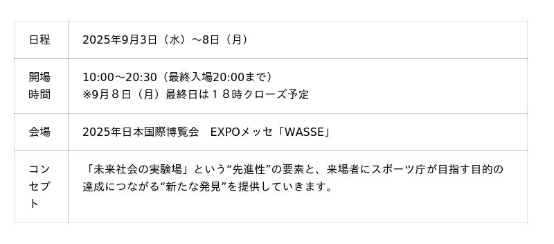※スポーツ庁万博特設ページ:https://www.mext.go.jp/sports/expo2025/