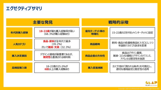 また、15-17歳でも49.1%が購入経験を持ち、Z世代がコラボ商品市場の主要ターゲット層であることが明確になりました。