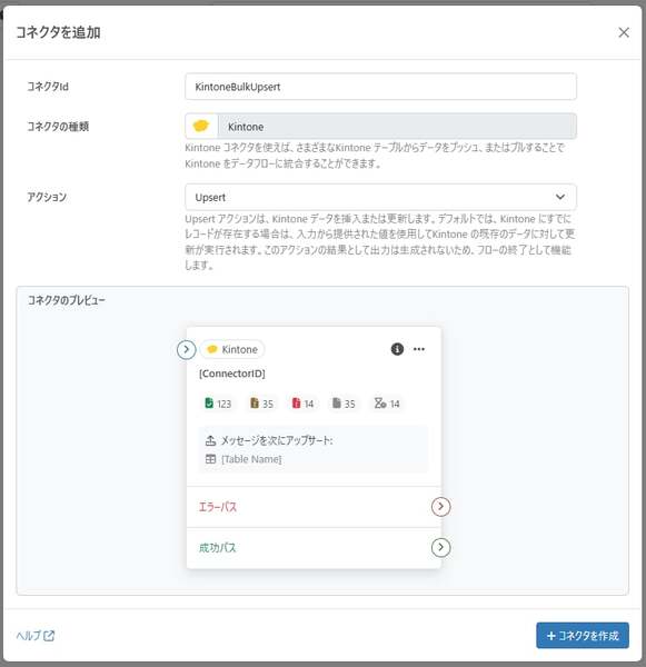 これで、kintone コネクタで一括Upsert をリクエストするための準備は完了です。