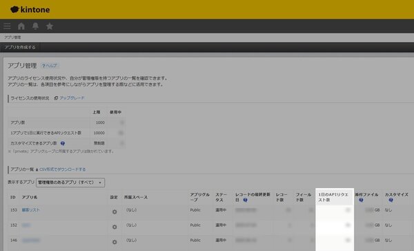 またkintone 側でも顧客リストアプリの更新結果とともに、「1日のAPIリクエスト数」などを利用して期待どおりのリクエスト数(削減)になっているか、などを確認することもできるでしょう。