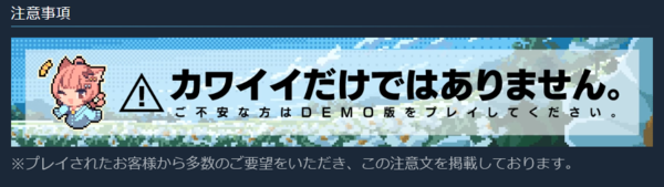 しかし今回はプレイヤーからメーカーに寄せられた指摘・問い合わせの中で「ストアをもっとわかりやすく、カワイイだけじゃないことを明記してほしい」というものが多数あったとのこと。その指摘を真摯に受け止め、Steamストアに「カワイイだけではありません。」という注意書きを掲示することになったのだという。