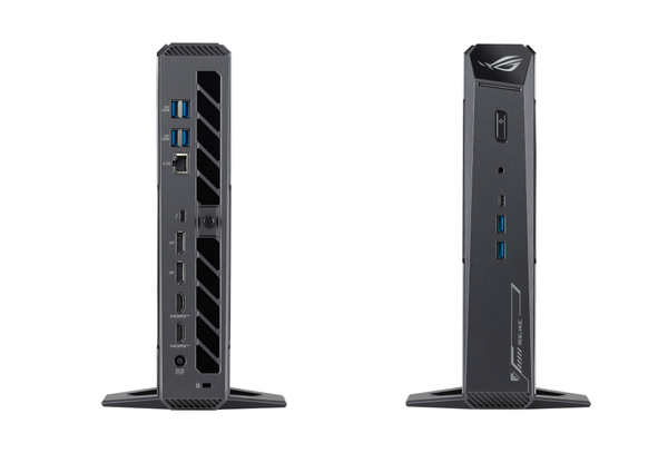 まずは、ゲーミングPC「ROG NUC 2025」だ。ゲーミングPCというと、独特なフォルムのデスクトップPCを思い浮かべる人も多いかもしれないが、本製品は、超コンパクトボディに高性能CPUとGPUを内蔵したゲーミングPCである。