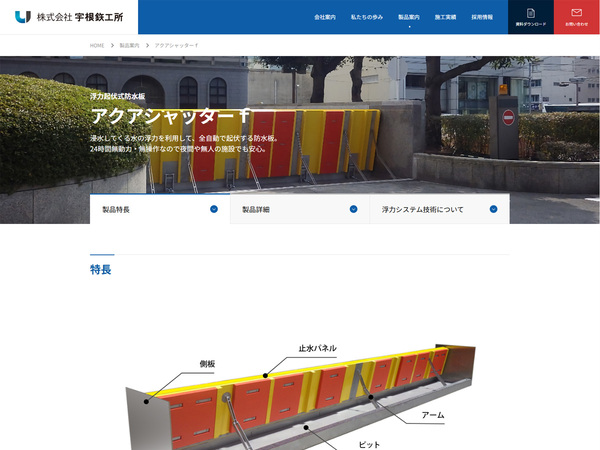 宇根鉄工所は、浮力起伏式防水板「アクアシャッターf」の状態監視システムにおいてメカトラックスと協業している。