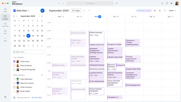 Zoom Workplaceのカレンダーでは、AICが多数の会議予定の中から「毎回欠席している」「これまでこの会議では発言していない」といった判断基準で“出席不要”を推奨し、空き時間を作ってくれる機能が追加された(画面はZoomtopiaより)