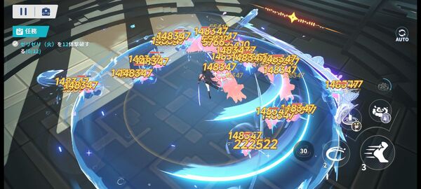 戦闘システムは範囲内の敵を自動で攻撃するもの。左手の仮想スティックで移動し、右手の各種ボタンで攻撃と回避をこなしていく。ただ、オート機能を使えば操作は移動+回避のみでOKとなり、割とお手軽な印象。