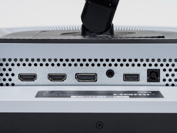 入力端子はHDMI 2.0×2とDisplay Port 1.4×1、出力はイヤホンジャック、設定用Type-Aを搭載する。