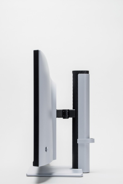 VESAマウントインターフェースは100×100mmを背面に内蔵しており、モニターアームでの利用が可能。モニター全体のサイズはスタンド込みで約617×211×548mm、重さはスタンド込みで6.9kgだ。