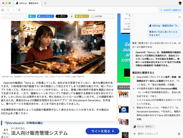 ニュースサイトやブログを読みながら、「要点だけ知りたい」「この結論は妥当?」といった疑問にその場で答えてくれる。 - 文章の書き換えをサポート