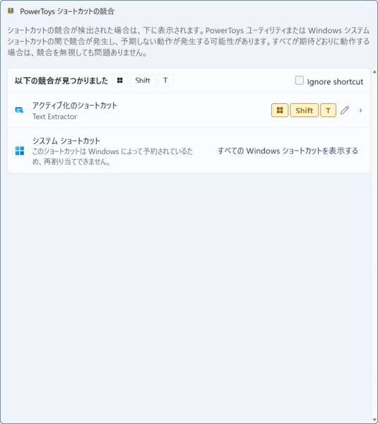 また、標準状態でWindowsのホットキーと競合するものがあるが、ユーティリティを有効化すると、PowerToys側のホットキーが有効になる。