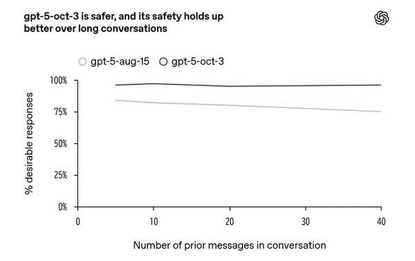 10月27日、OpenAIはデリケートな会話におけるChatGPTの対応強化指針を公開した。ユーザーが精神的な苦痛、自殺や自傷行為の兆候、あるいは精神病や躁状態といった深刻なメンタルヘルスの懸念を示した場合の応答を改善するものだ。