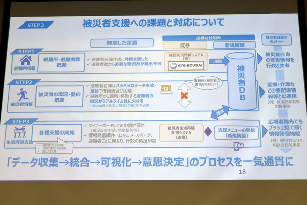 とはいえ、災害支援に関しては、すでにシステムがあり、縦割りの行政組織が連携を阻んでいる。そのため、データ収集、統合、可視化、意思決定までのプロセスを一気通貫で提供するのが重要だと西垣氏はアピール。「この被災者支援データベースの仕組みは、既存のシステム拡張では実現できないということが、石川県の今回の発見。この課題は、市町村業務と都道府県の業務の連携を平常時に実証できていたからこそわかった課題で、これをいかに国とやっていくのかが今、私がやっていること」と語る。
